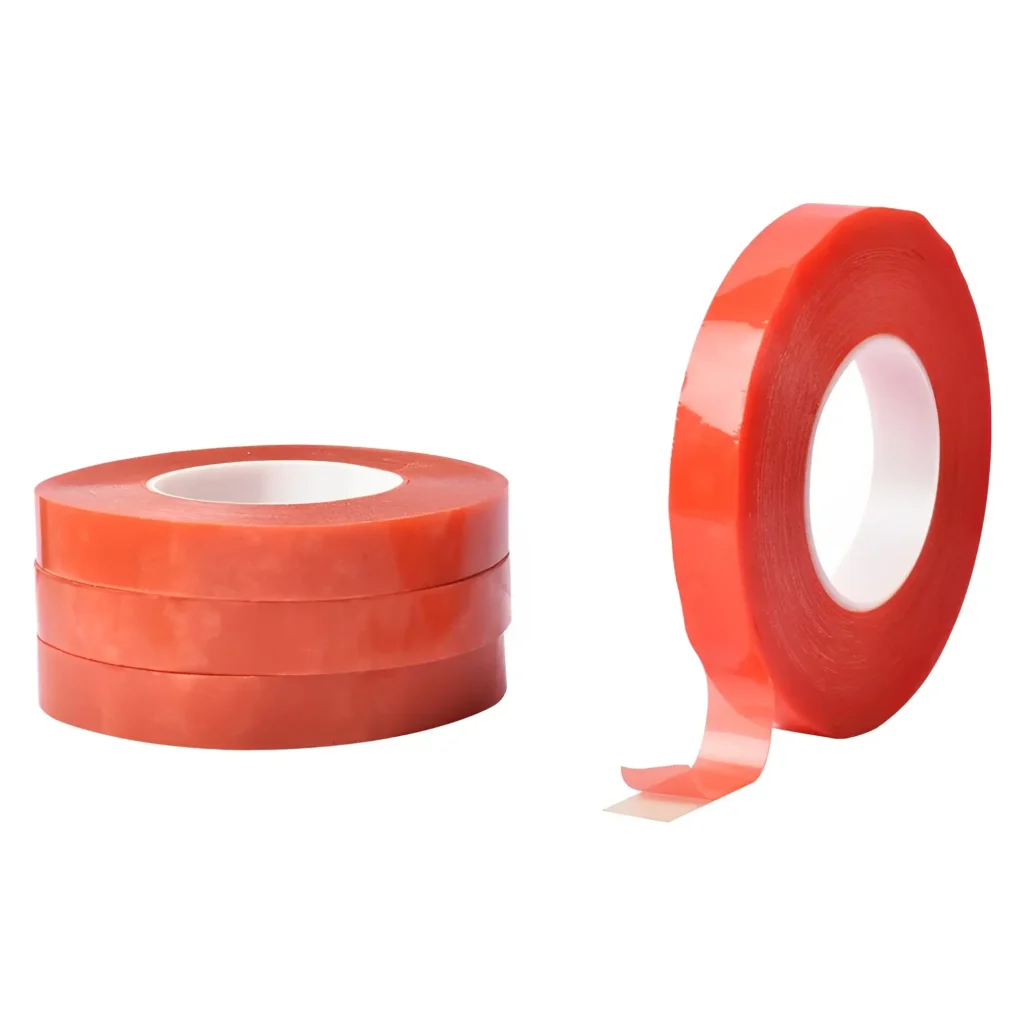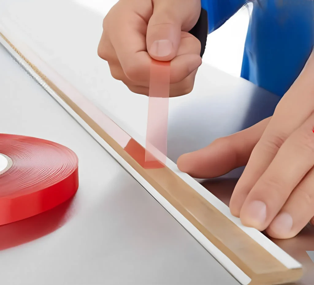 High-strength double-sided tape for bonding metal, glass, and plastic with clean and lasting adhesion.