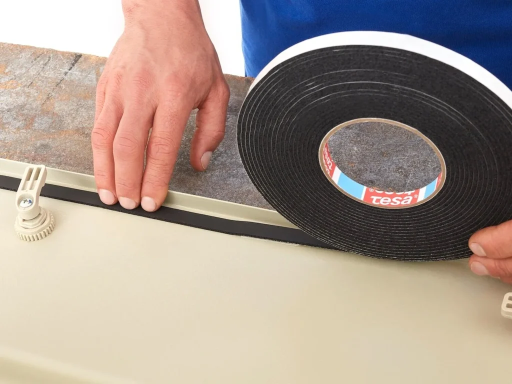 Cushioning and sealing foam tape with adhesive for vibration absorption, mounting, and gap filling in various applications.